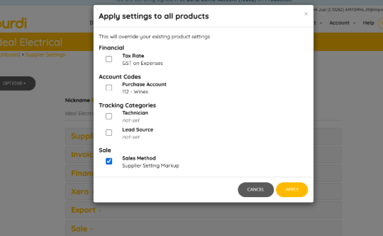 ⚠️ Important: Applying these settings will override the existing settings for all products linked to this supplier.
