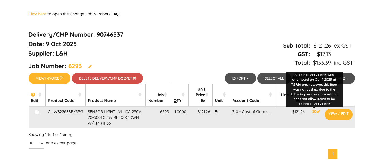 ServiceM8 Error: "Store setting does not allow items to be pushed to ServiceM8" If you are automatically pushing invoices to ServiceM8 and you receive an error message with an X icon of "Store setting does not allow items to be pushed to ServiceM8". ...
